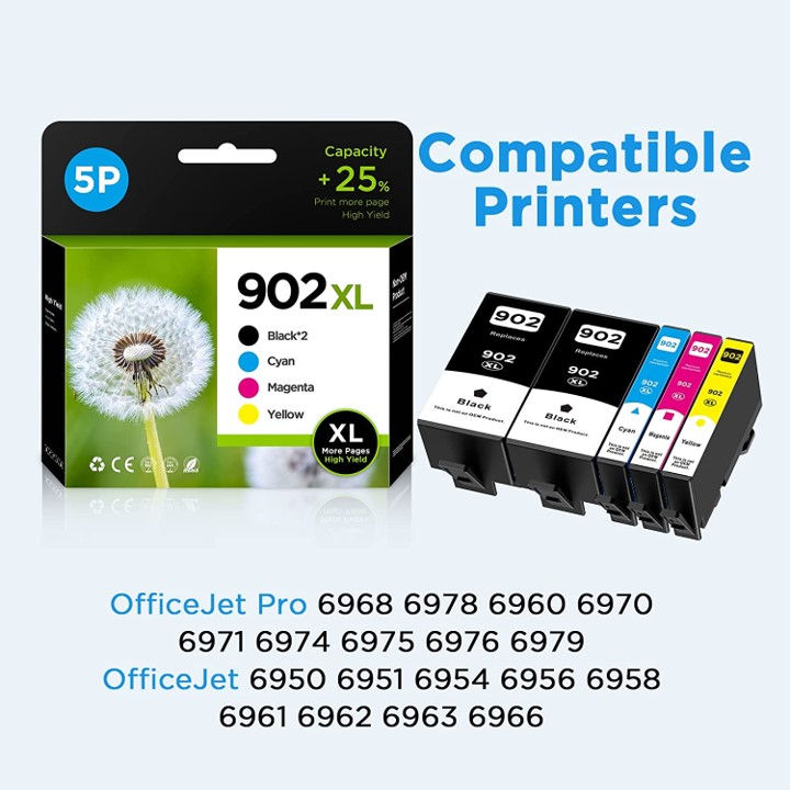 902XL 5 Pack High Yield Upgraded Ink Cartridges Replacement for HP 902 XL 902XL